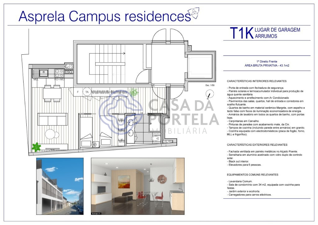 На продажу предлагаются три квартиры T1 Kit, с парковочным местом и кладовой.